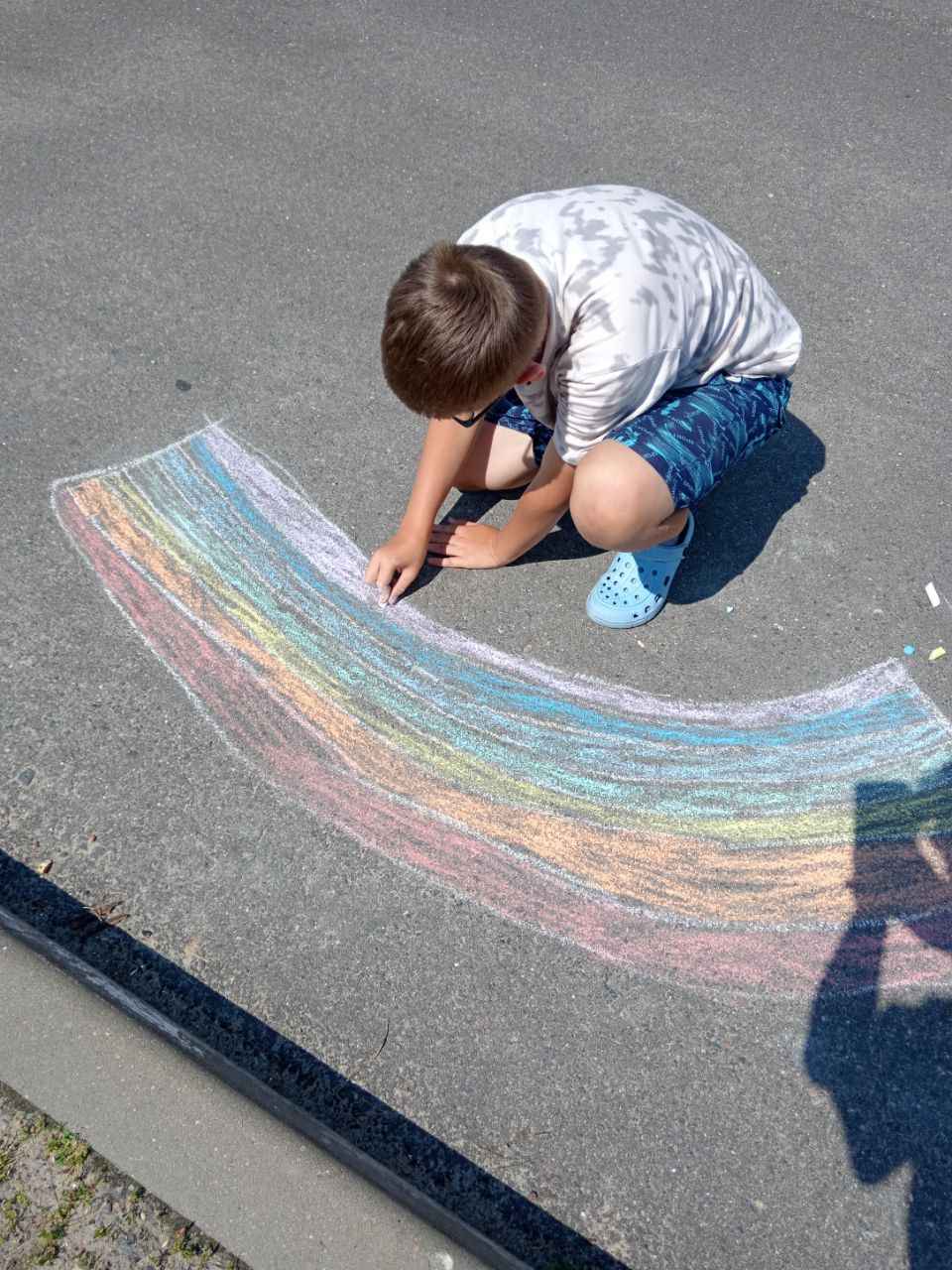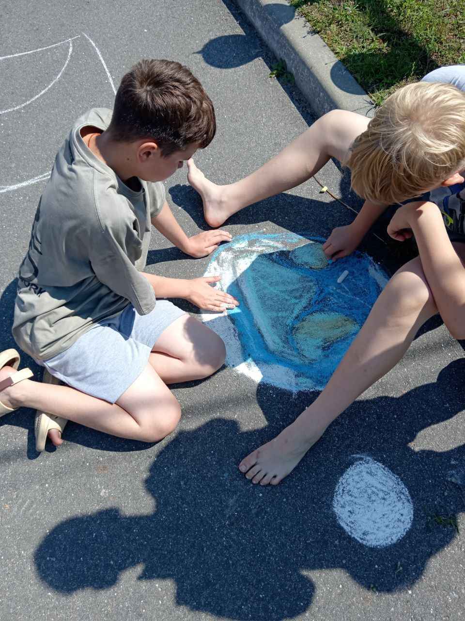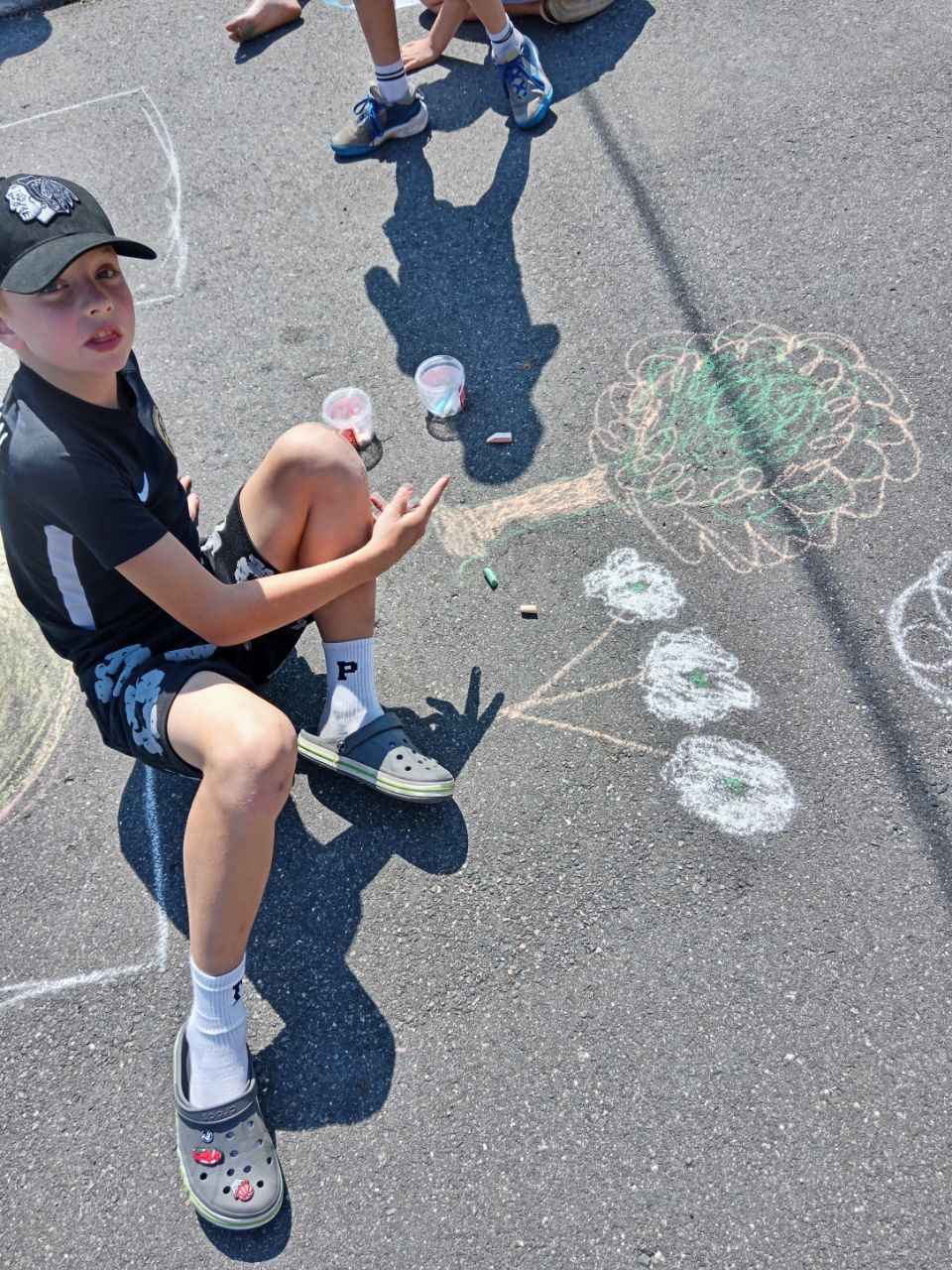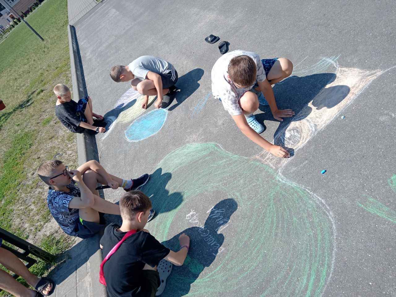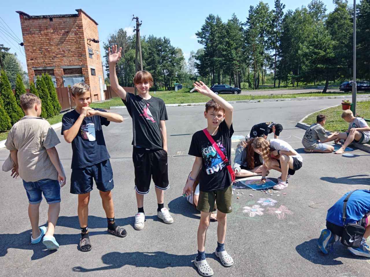 Затем прошла интерактивная игра «Да — нет», где участники определяли, какие привычки помогают природе, а какие — вредят ей. Ребята с интересом реагировали, рассуждали и комментировали ответы. После этого дети творчески выразили своё отношение к природе: на асфальте появились яркие рисунки с деревьями, животными, солнечным небом и зелёными полями. Участники с удовольствием делились идеями и создавали «улицу природы».