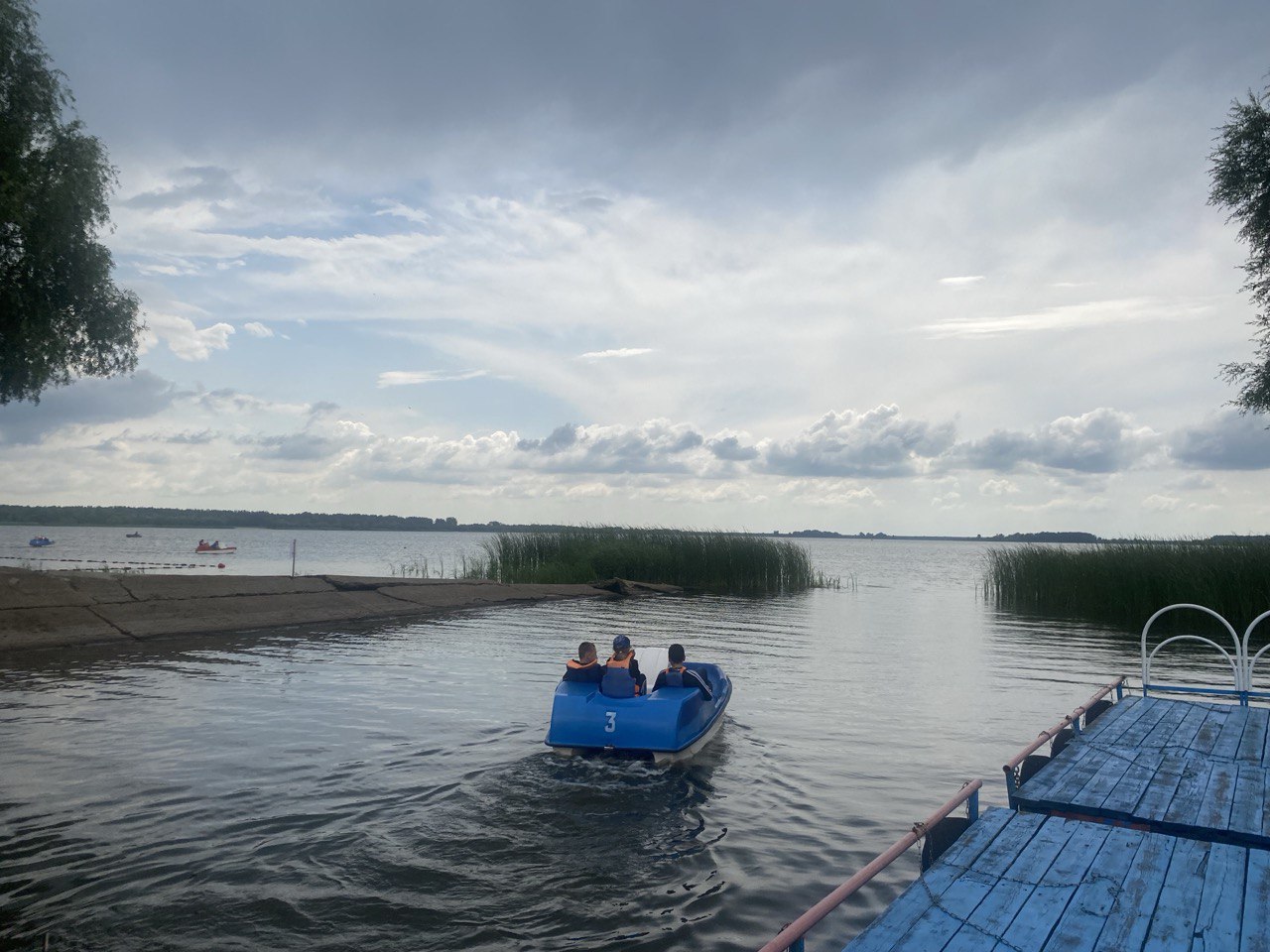 Отдыхающие по программе Союзного государства с удовольствием отправились на водную прогулку по озеру на катамаранах. Красивые фотографии помогут сохранить приятные воспоминания об отдыхе.