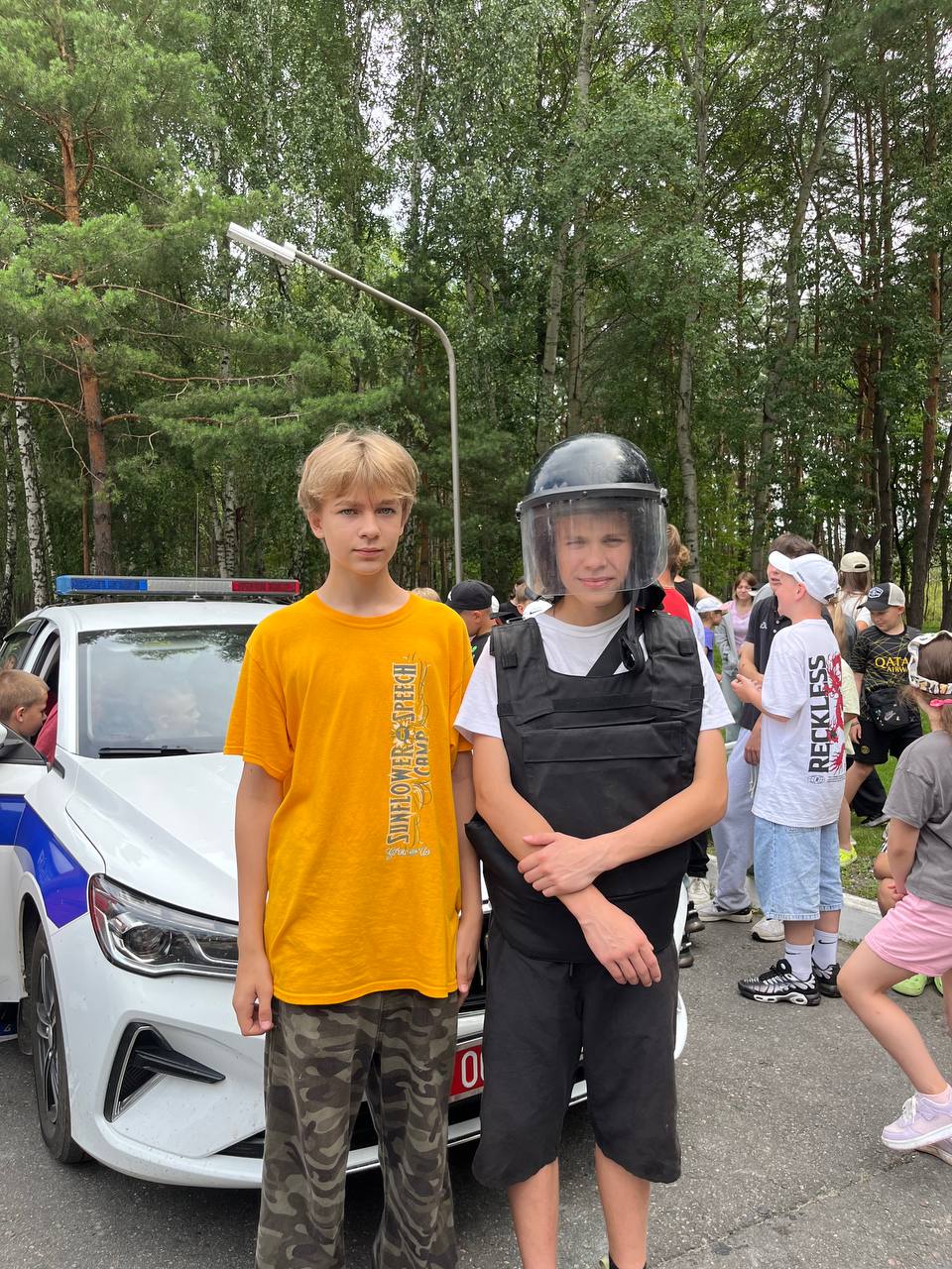 С приходом лета у детей появляется много свободного времени, большую часть которого они проводят на улице. Катание на велосипедах, самокатах, на других средствах персональной мобильности, а также игры вблизи дорог могут таить в себе опасность. Вопросам профилактики детского дорожно-транспортного травматизма была посвящена сегодняшняя встреча ребят 4 смены воспитательно-оздоровительного и палаточного лагеря с сотрудниками Пинского РОВД. В ходе мероприятия испекторы напомнили детям основные правила дорожного движения, обратили внимание на ответственность за нарушение данных правил, продемонстрировали специализированную технику и обмундирование.