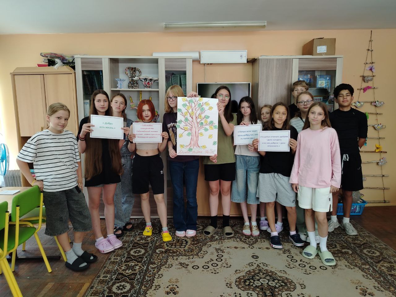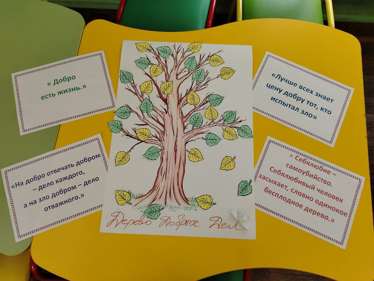 Сегодня ребята из 1 отряда Белорусского металлургического завода участвовали в внеклассном мероприятии по духовно-нравственному воспитанию «Спешите делать добро». Мероприятие направлено было на формирование нравственных качеств личности учащихся, воспитание доброты, вежливости, внимания и дружбы, умения дорожить близкими. Ребята сделали дерево добрых дел. В конце мероприятия был сделан вывод: человеческая доброта и милосердие, умение радоваться и переживать вместе с другими – основа человеческого счастья.