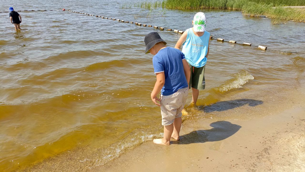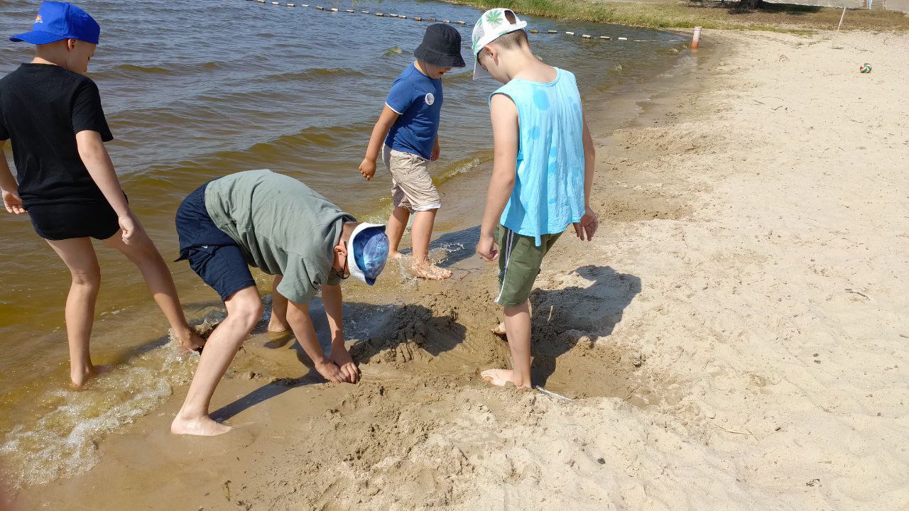 Сегодня дети из Калужской области посетили пляж. К сожалению, температура воды была низкой для купания. Но ребята не отчаялись и нашли себе не менее увлекательное занятие - строительство из песка и хождение на мелководье.
