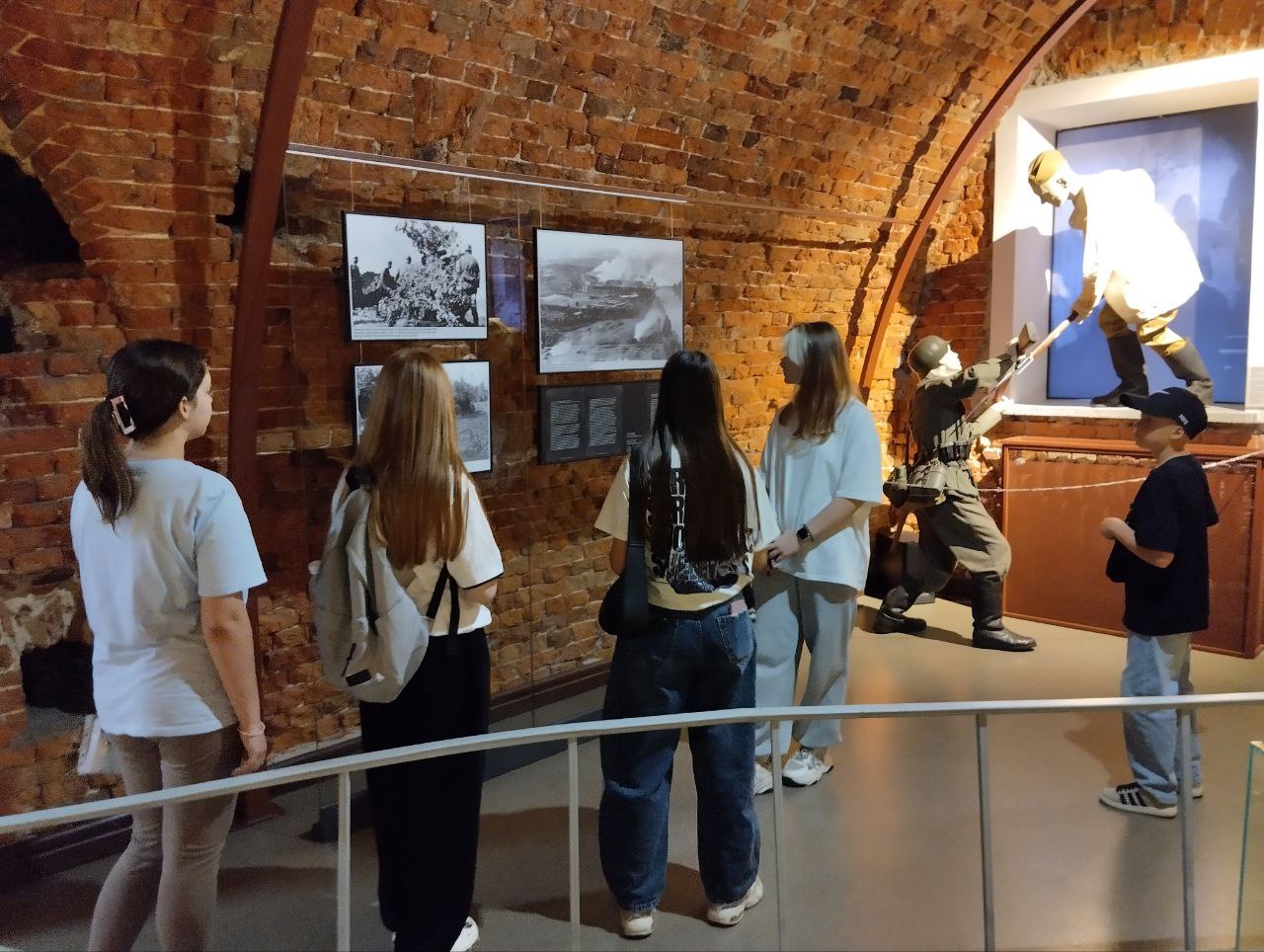 Сегодня учащиеся из Калужской области, отдыхающие по программе Союзного государства, совершили экскурсию в Мемориальный комплекс «Брестская крепость - герой». Поездка позволила школьникам узнать больше о подвиге советских солдат, увидеть монументы и экспозиции мемориального комплекса. Услышав голос знаменитого диктора Юрия Левитана и звуки метронома, дети смогли глубже погрузиться в атмосферу начала войны.