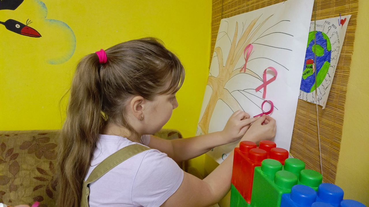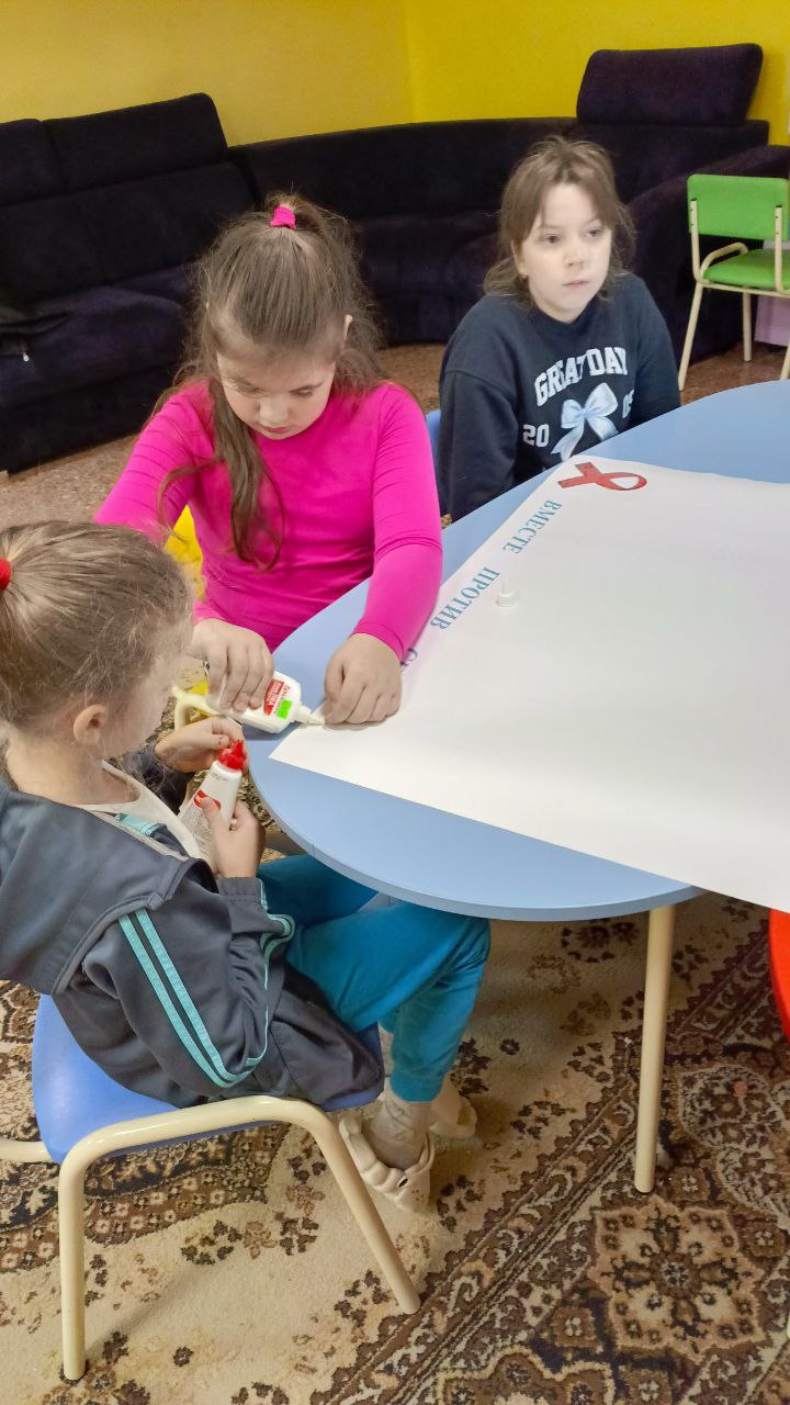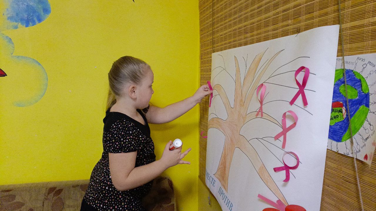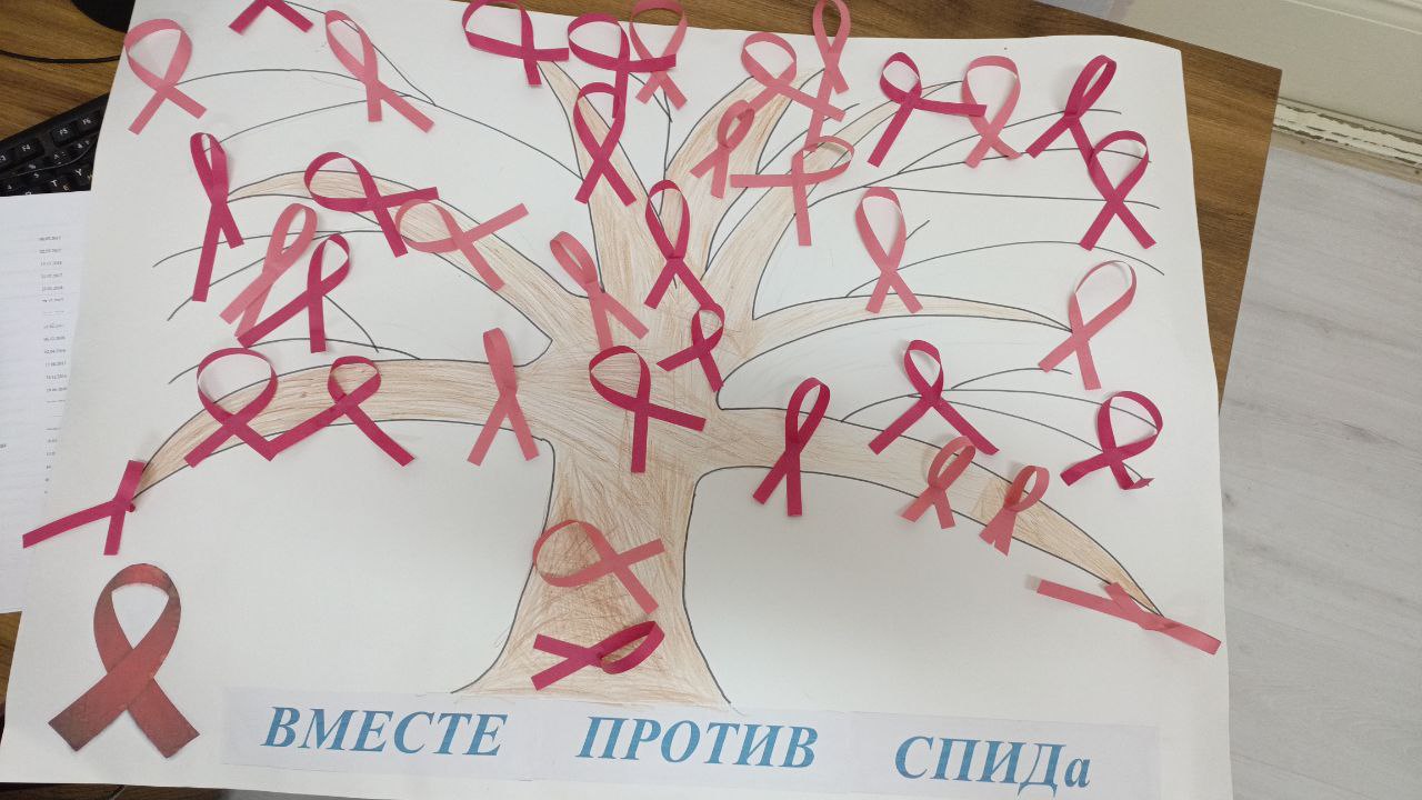 Учащиеся начальных классов своими руками создали «Дерево жизни» — яблоню, ветви которой украсили десятки алых ленточек, международных символов борьбы с ВИЧ/СПИДом, в также яркий символ надежды и солидарности.