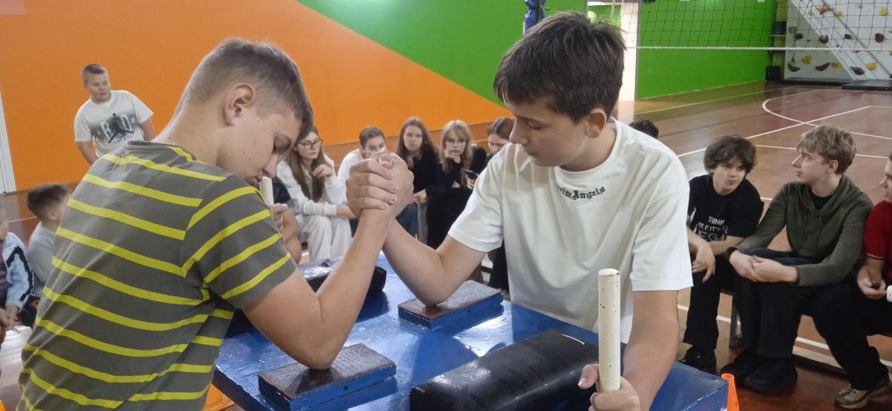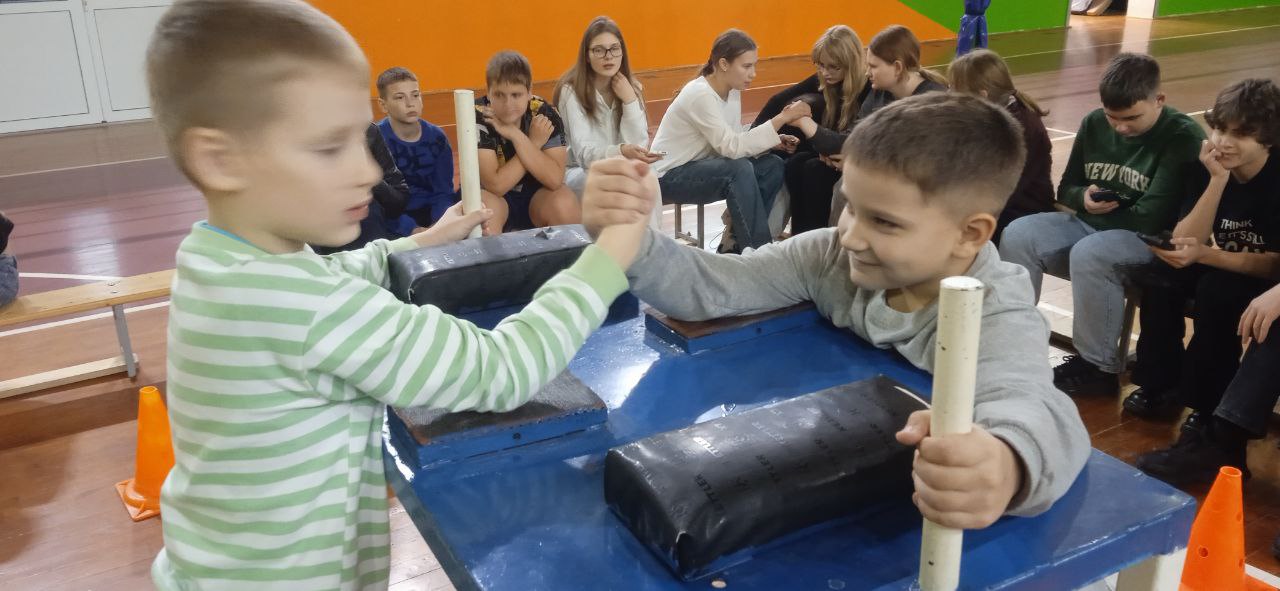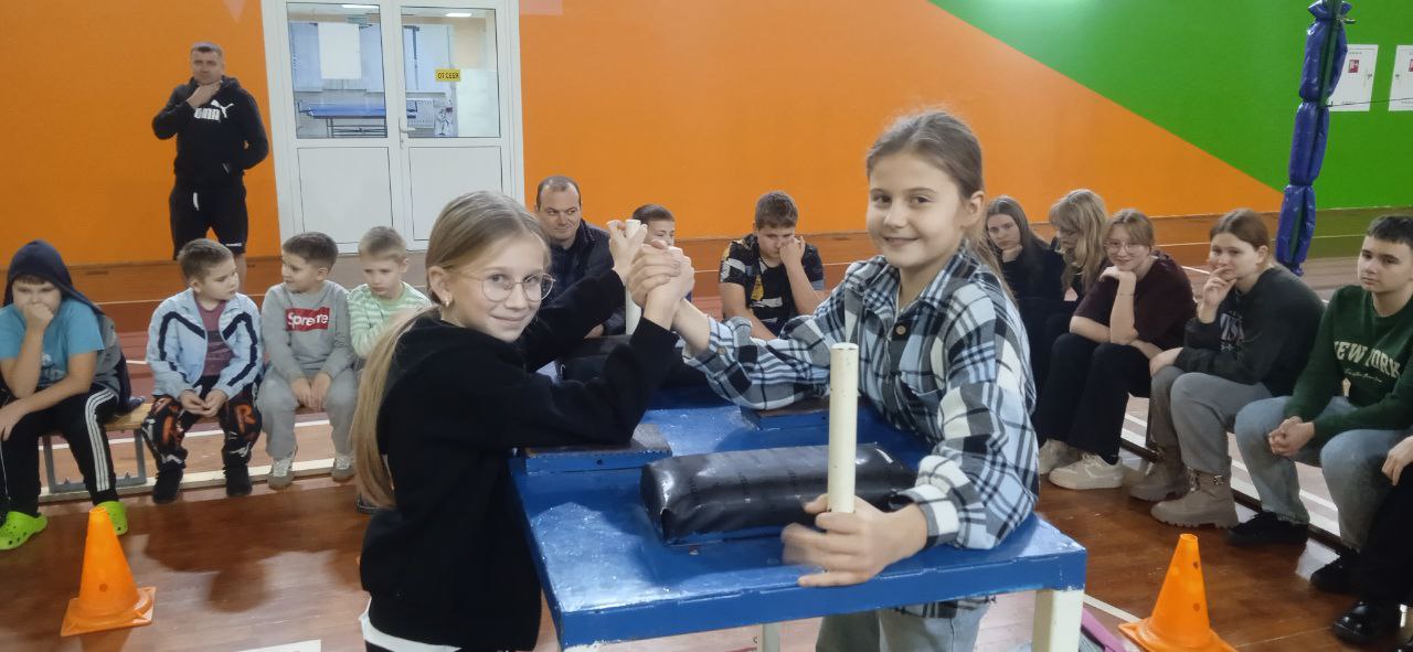 В борьбе на руках приняли участие как мальчики так и девочки.