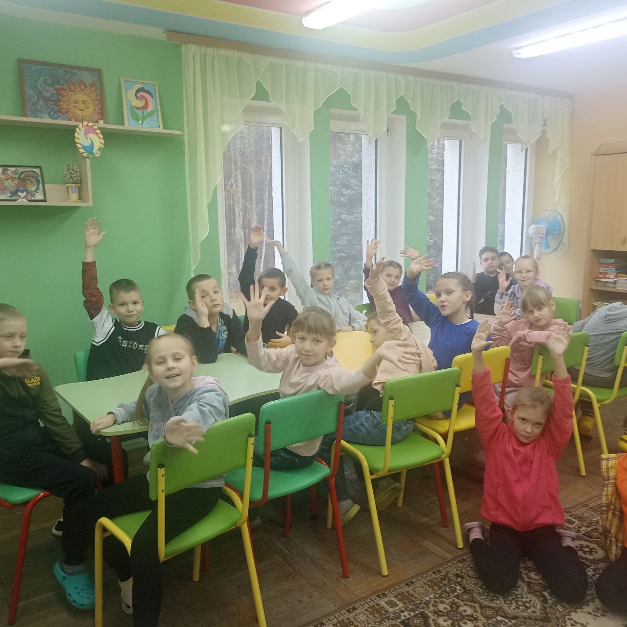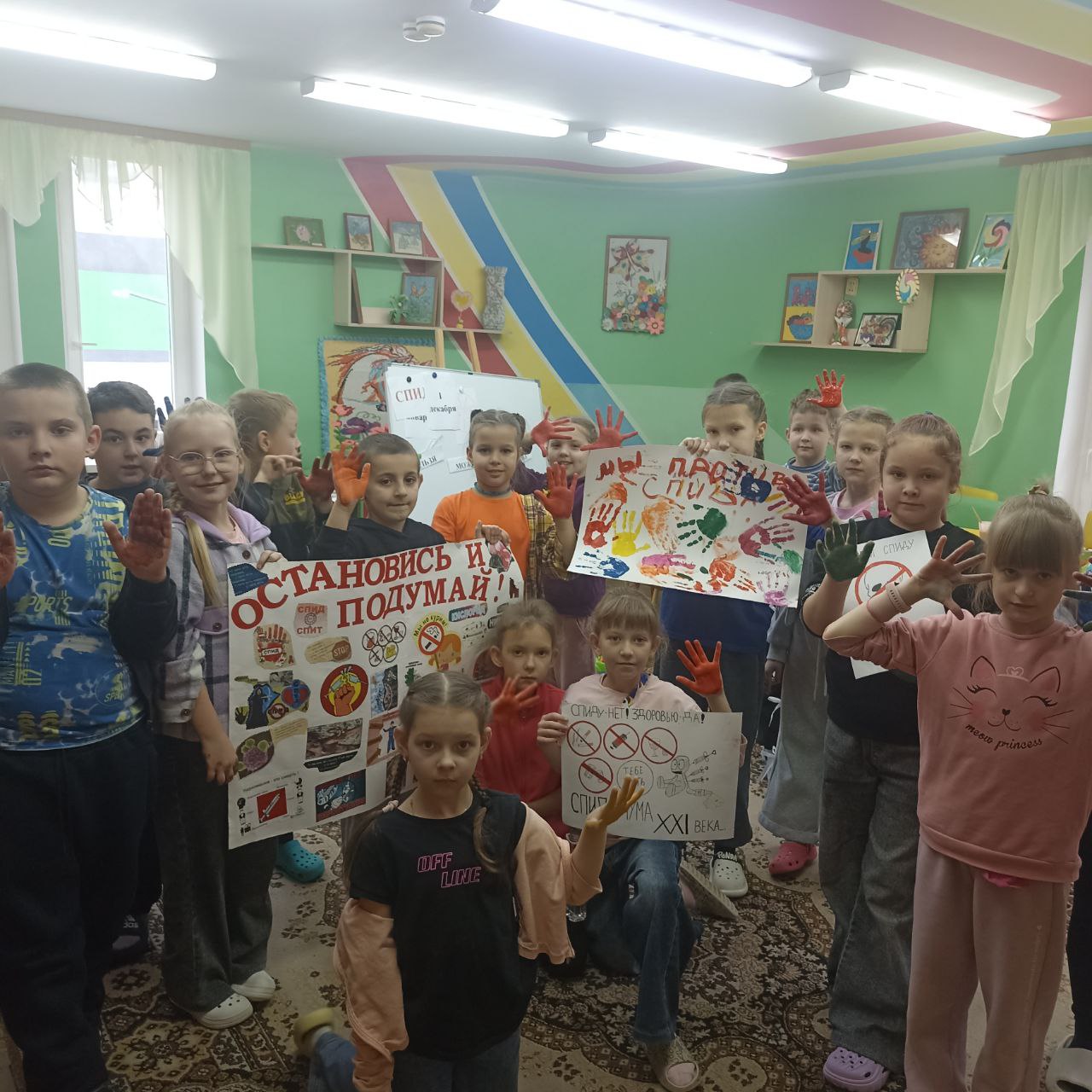 Учащиеся познакомились с историей распространения болезни в мире, получили информацию о понятиях "вирус", "СПИД", "профилактика", а также с элементарными предоставления о передаче ВИЧ- инфекции, с правилами поведения с ВИЧ-инфицированными и больными СПИДом в обществе, с профилактикой этого заболевания .В конце беседы нарисовали плакат и рисунки по данной теме.