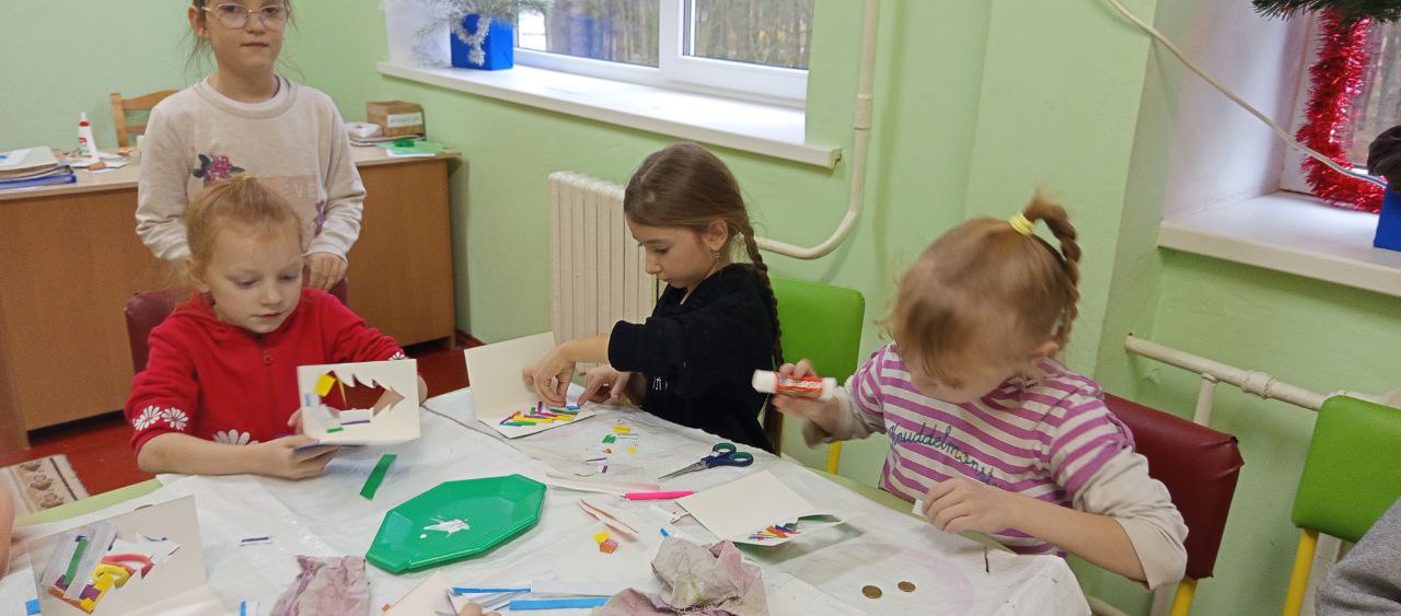 Для второклашек Белоушской средней школы в комнате отдыха №4 работала мастерская по изготовлению поздравительных открыток в технике айрис-фолдинг. Складывая полоски бумаги по определенной схеме, ребята создавали уникальные, яркие, объемные изображения.