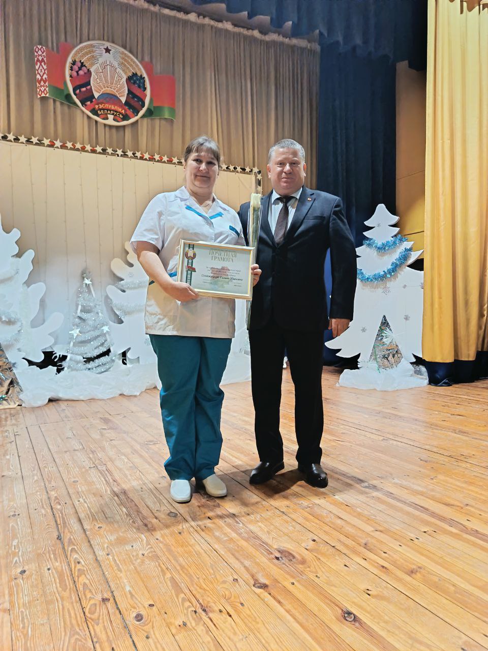 Грамотой Пинского районного исполнительного комитета награждена Кулешевич Татьяна Фёдоровна, медсестра-массажистка.