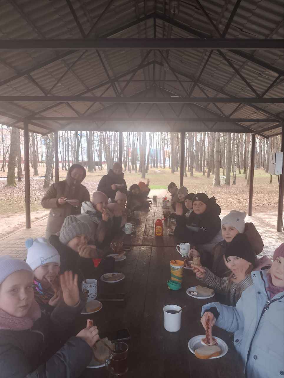 Лёгкий морозец подогрели фирменным чаем, на природе еда с мангала улетала за три секунды,а руки грел огонь 🔥 костра))
