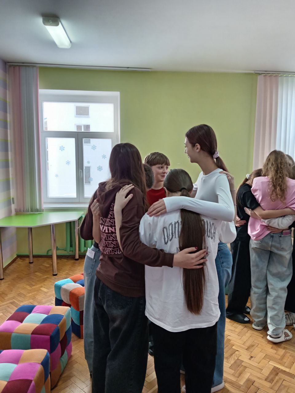 Ежедневно в Центре проходят интерактивные занятия с элементами тренинга "Искусство понимать друг друга", "Ребята, давайте жить дружно!" На занятиях ребята приобретают коммуникативные навыки, узнают больше друг о друге. Общение на занятиях повышает настроение у ребят, создаёт в детском коллективе обстановку доверия и дружелюбия.