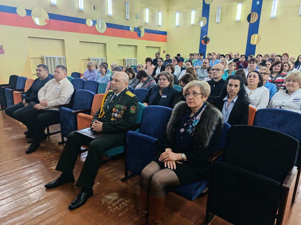 Разговор шел об оборонительной мощи белорусской армии и патриотизме в современных условиях. Перед коллективом выступил подполковник запаса Юхневич В.В.