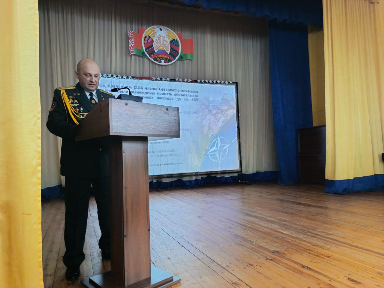 Виталий Владимирович подчеркнул, что сегодня Вооруженные Силы Республики Беларусь являются надёжным щитом от внешних угроз. В ходе выступления были освещены вопросы технического переоснащения армии.