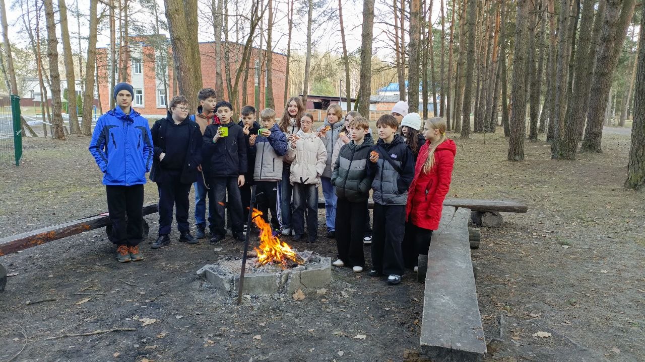 На лесной поляне ярко вспыхнул костер дружбы, объединив ребят из СШ № 2 г. Гомеля в один большой круг. Школьники жарили сосиски, делились теплыми моментами, чувствуя настоящее единство. Глядя на затухающие угли, ребята обещали вернуться к этому огню в следующем году.