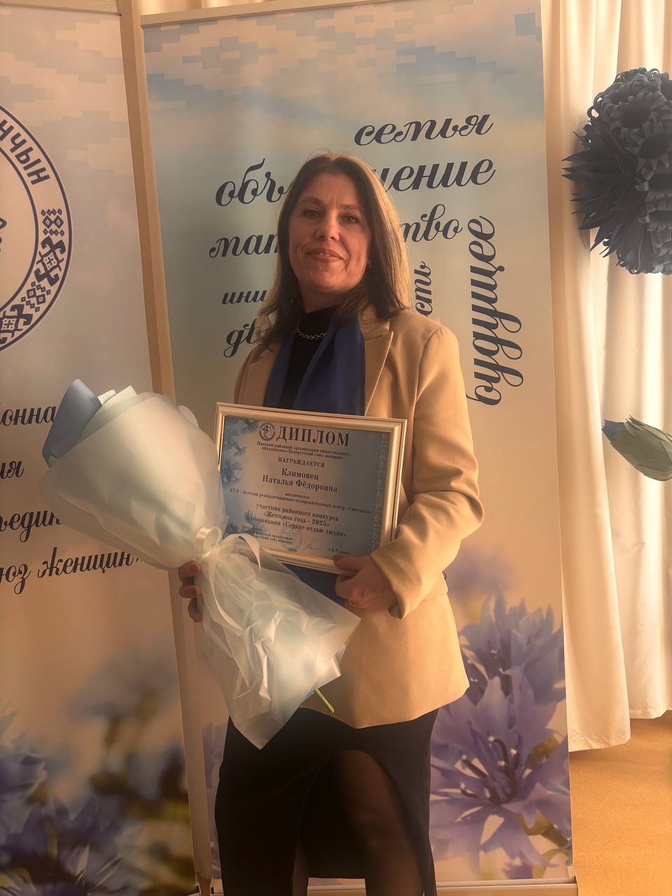 Детский центр «Свитанак» представляла воспитатель Климовец Наталья Федоровна, которая отдала центру 30 лет работы.