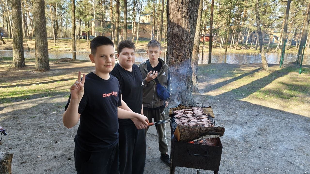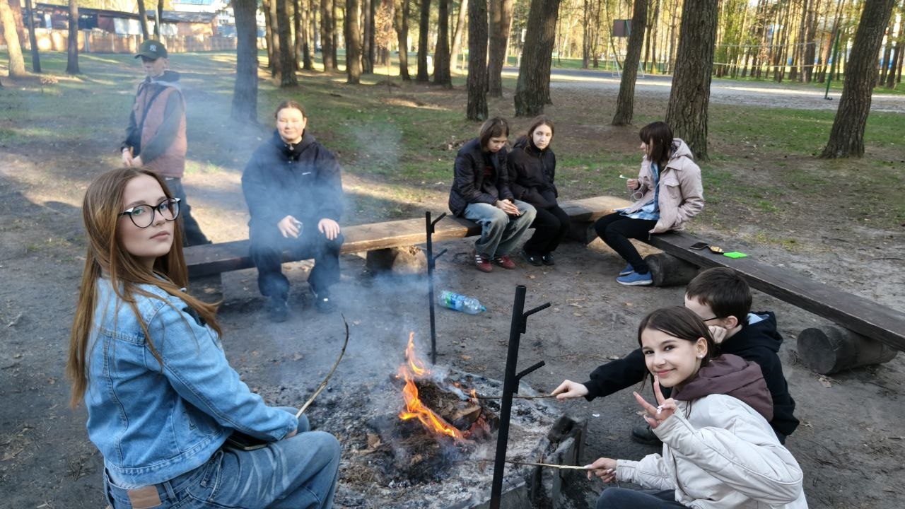 Свежий воздух, пение птиц, командные игры, катание на троллее и совместное приготовление чая из веточек малины сделали вечер незабываемым.