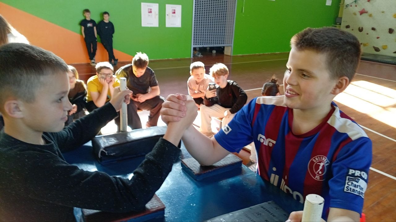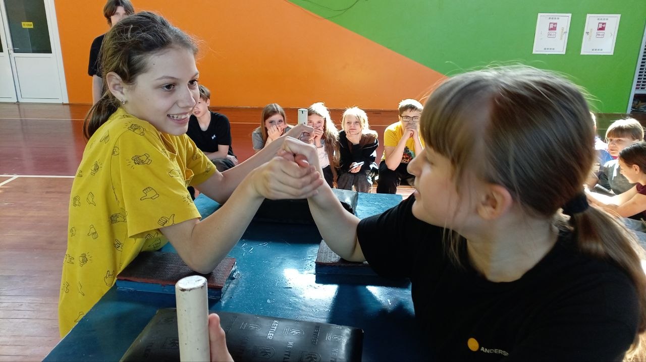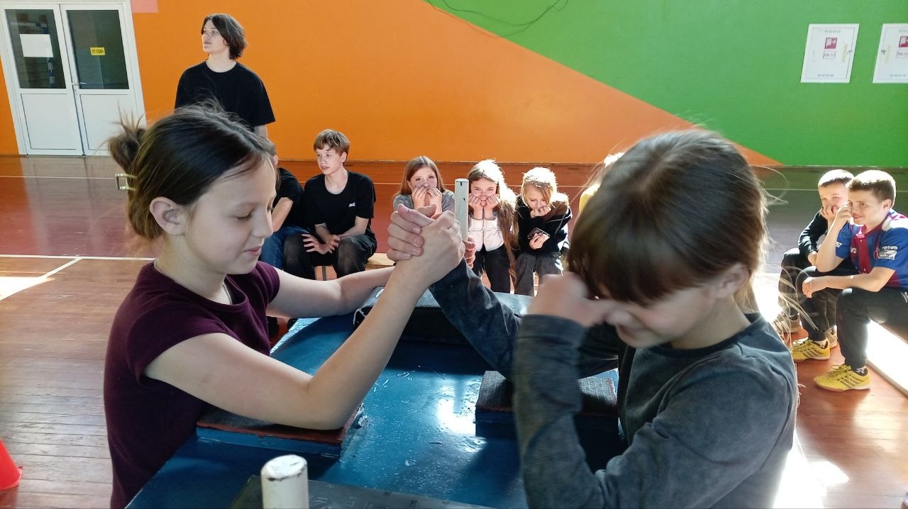 Девочки и мальчики померялись силами в борьбе на руках.