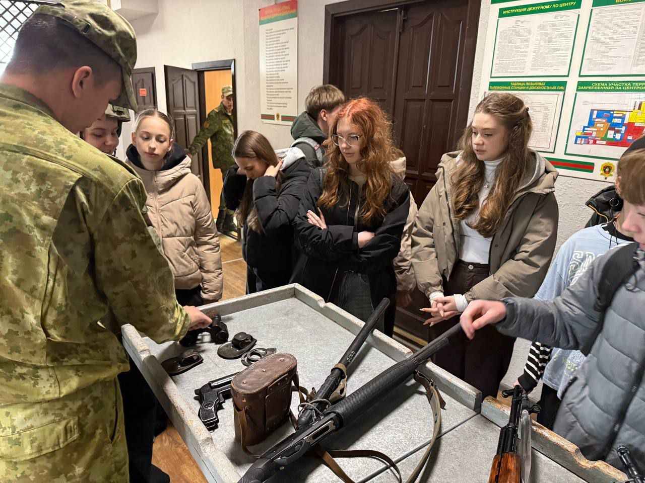 В рамках гражданско-патриотического воспитания для учащихся средней школы №2 г.Гомеля 23 апреля была организована экскурсия в воинскую часть. Ребятам напомнили о героизме и подвиге пограничников в годы Великой Отечественной войны, показали и рассказали, как сейчас функционирует пограничная служба. Акцент был сделан на то, что молодежь - это то ядро, которое будет формировать будущее нашей страны.